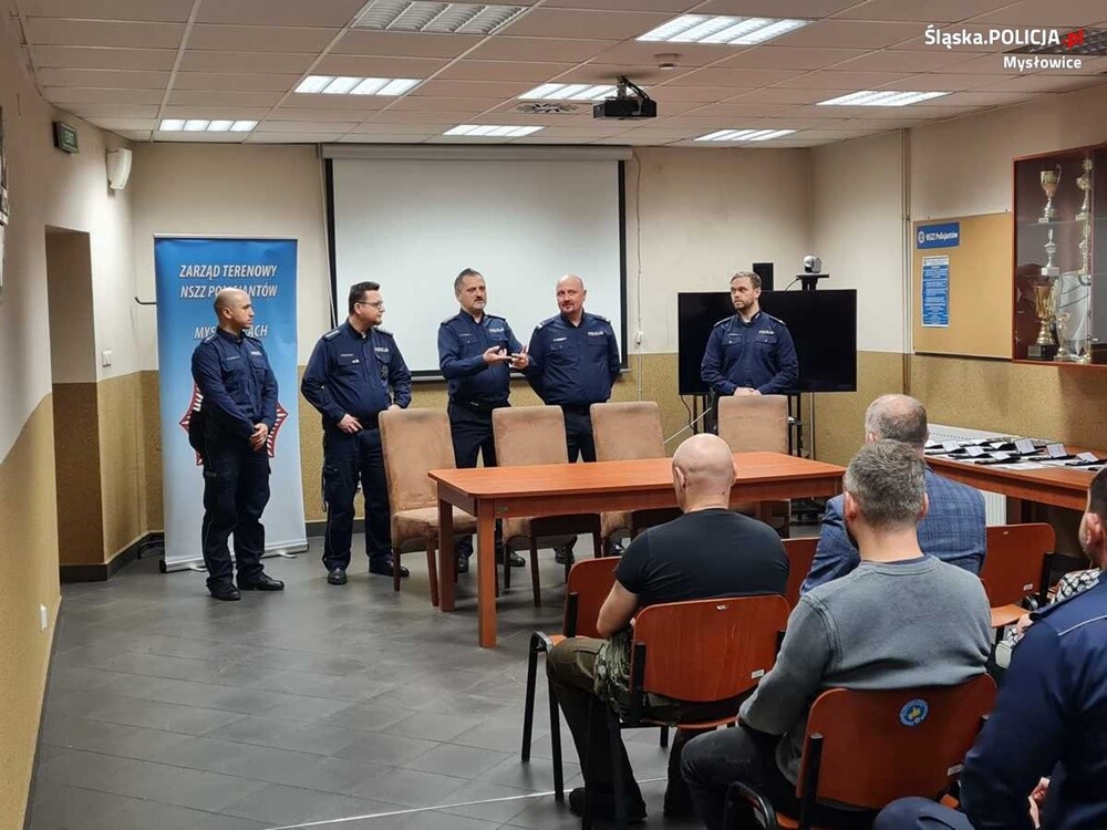 W spotkaniu uczestniczyli Komendant Miejski Policji w Mysłowicach podinsp. Jarosław Bąk, I Zastępca Komendanta Miejskiego Policji w Mysłowicach podinsp. Piotr Migacz, Przewodniczący Zarządu Wojewódzkiego NSZZ Policjantów woj. śląskiego – Michał Szczęśniak, Wiceprzewodniczący Zarządu Terenowego NSZZ Policjantów w Mysłowicach – Adrian Bandziarowski, Wiceprzewodniczący Zarządu Terenowego NSZZ Policjantów w Mysłowicach – Paweł Boroń, Wiceprzewodniczący Zarządu Terenowego NSZZ Policjantów w Mysłowicach – Tomasz Wyszomirski oraz funkcjonariusze mysłowickiej komendy.