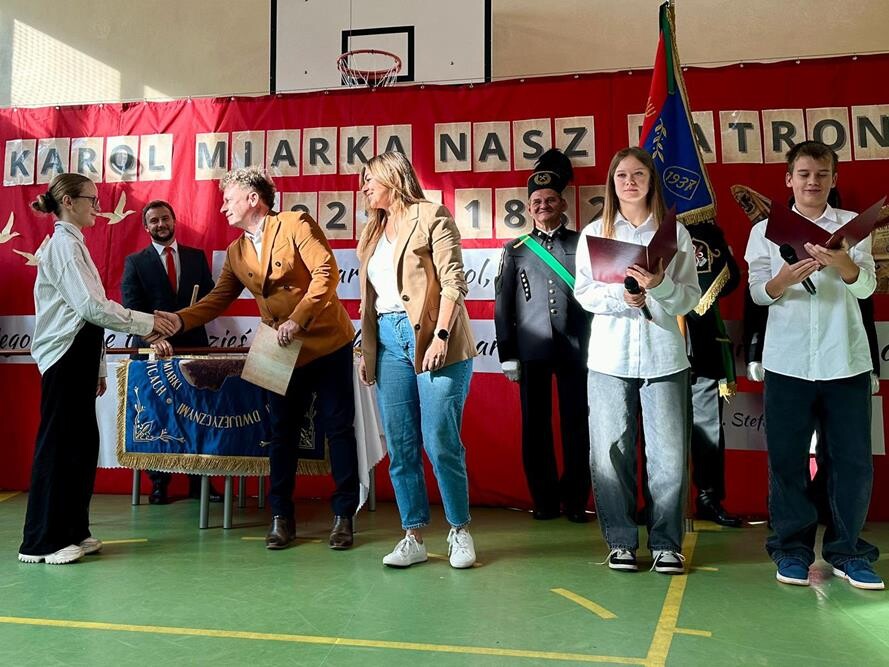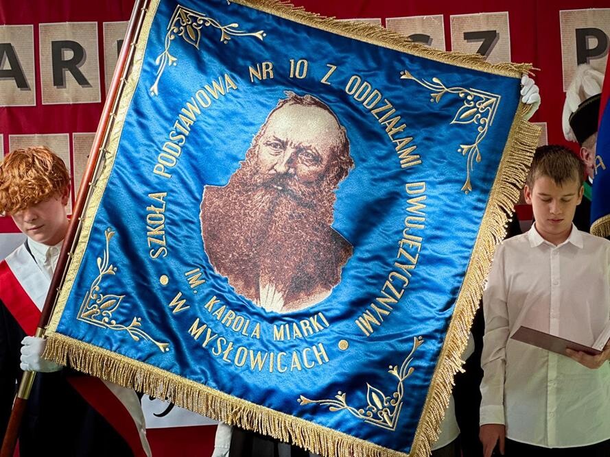 Szkoła Podstawowa nr 10 z Oddziałami Dwujęzycznymi w Mysłowicach zyskała nowy sztandar. To ważny moment w historii szkoły, symbolizujący tożsamość, wartości i jedność całej społeczności szkolnej. Uroczystość miała miejsce w 200. rocznicę urodzin patrona szkoły – Karola Miarki, wybitnego działacza społecznego, nauczyciela i wydawcy, który całe życie poświęcił edukacji i budzeniu świadomości narodowej.