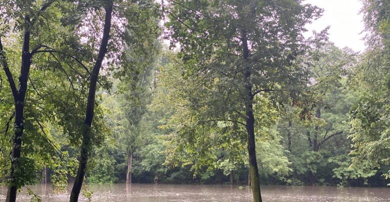 Po wczorajszych intensywnych ulewach, w Mysłowicach wylała rzeka Przemsza. Woda przelała się przez wał powodując lokalnie podtopienia.