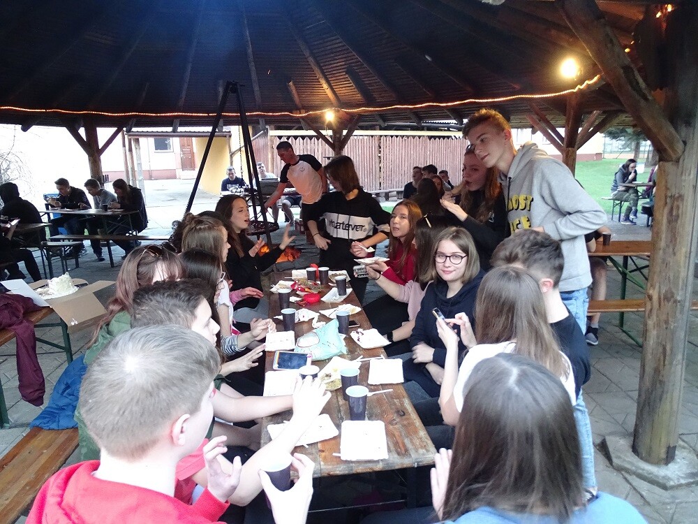 Wyjechali ci, którzy CHCIELI i WIEDZIELI, CO ICH CZEKA. Po śniadaniu - zajęcia, po obiedzie – zajęcia, a po kolacji (i tu niespodzianka) – zajęcia. Nie było litości, ale - co najważniejsze - większość uczestników sama tego chciała. Do późnych godzin nocnych konsultowali z nauczycielami odpowiedzi do zadań (z panią Magdaleną Walą), dłuższe formy wypowiedzi pisemnych (z panią Elżbietą Hahn), poprawność obliczeń (z panią Anną Szczęsną) itp. Także pani Jolanta Stach, pani Renata Król i pani Agnieszka Filocha cierpliwie odpowiadały na pytania i tłumaczyły, tłumaczyły, tłumaczyły… Nauka odbywała się w różnych okolicznościach przyrody, np. na trybunach stadionu, na ławeczkach przy kręgu ogniskowym, a klasa 3a z panią Sylwią Gajdzik miała okazję przypomnieć sobie „Dziady cz. II” Adama Mickiewicza podczas nocnego czytania dramatu przez zaprzyjaźnionych uczniów z Katowic w pobliskim lesie.