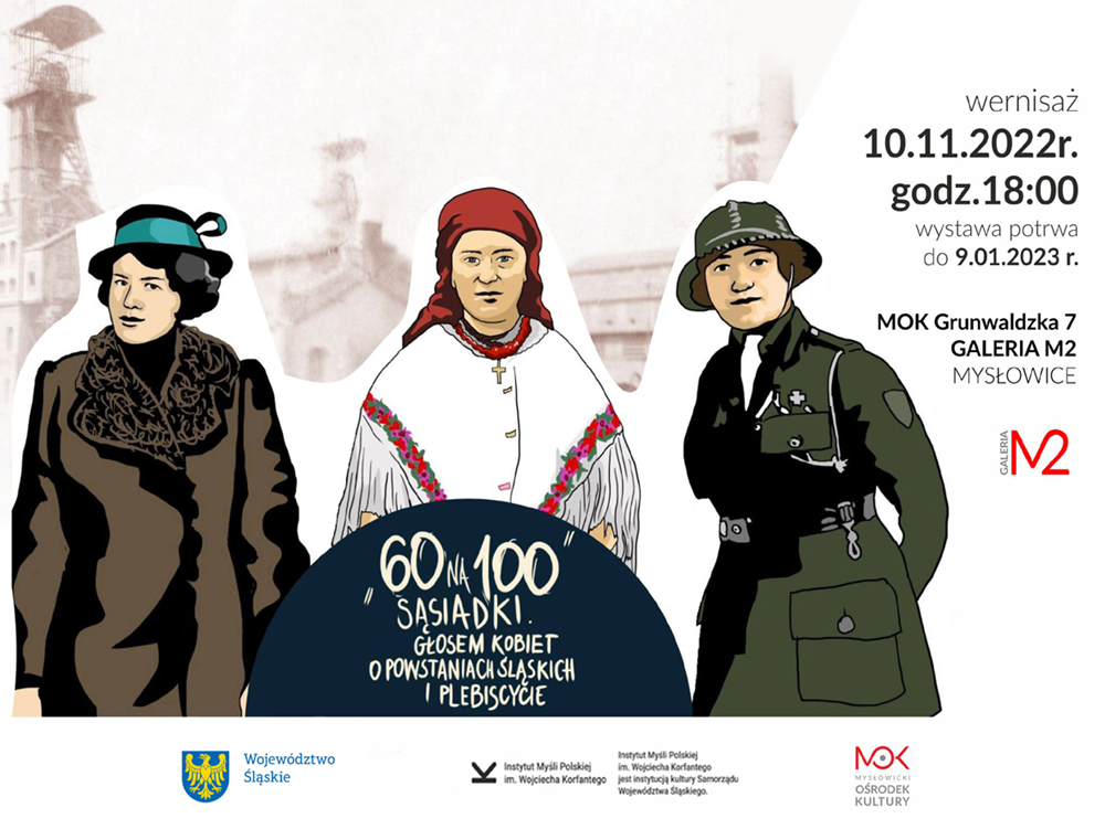Mysłowicki Ośrodek Kultury wraz z Instytutem Myśli Polskiej im. Wojciecha Korfantego zaprasza na wystawę "60 na 100. SĄSIADKI. Głosem Kobiet o powstaniach śląskich i plebiscycie".