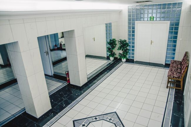 W wystroju dominuje kolor bieli i odcieni beżowego oraz bordo, na ścianach powieszono duże lustra optycznie powiększające przestrzeń. Sala mieści około 100 osób w tym 35 miejsc siedzących. Sala jest klimatyzowana.