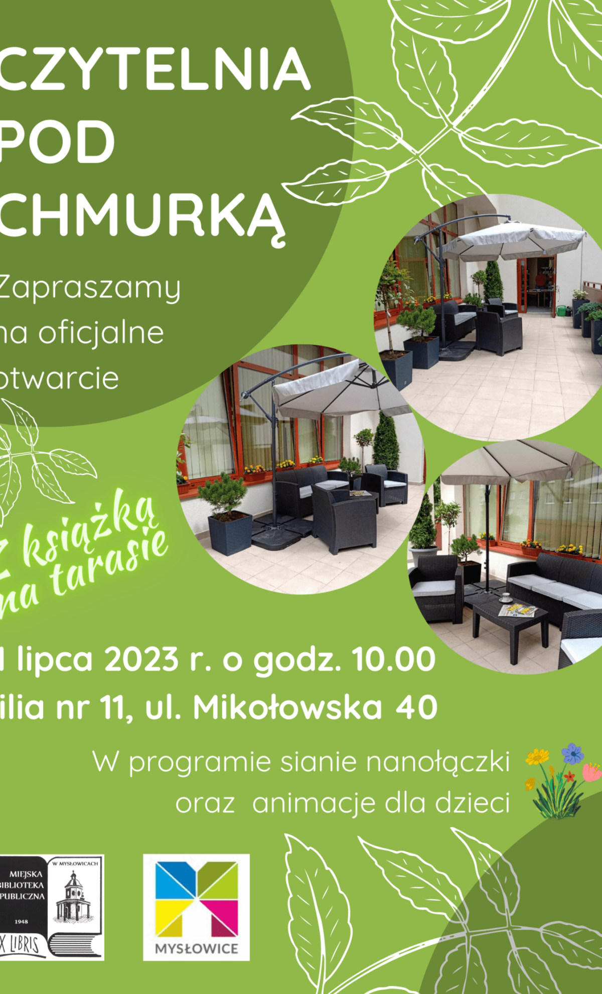 Już 11 lipca o godzinie 10:00, nastąpi na oficjalne otwarcie „Czytelni pod Chmurką” – klimatycznej przestrzeni tarasowej w Filii nr 11 przy ul. Mikołowskiej 40, która służyć będzie nie tylko czytelnikom biblioteki, ale wszystkim mieszkańcom.
