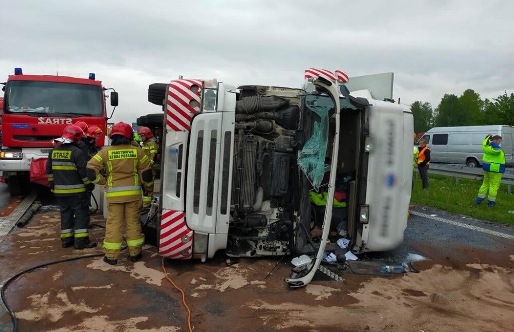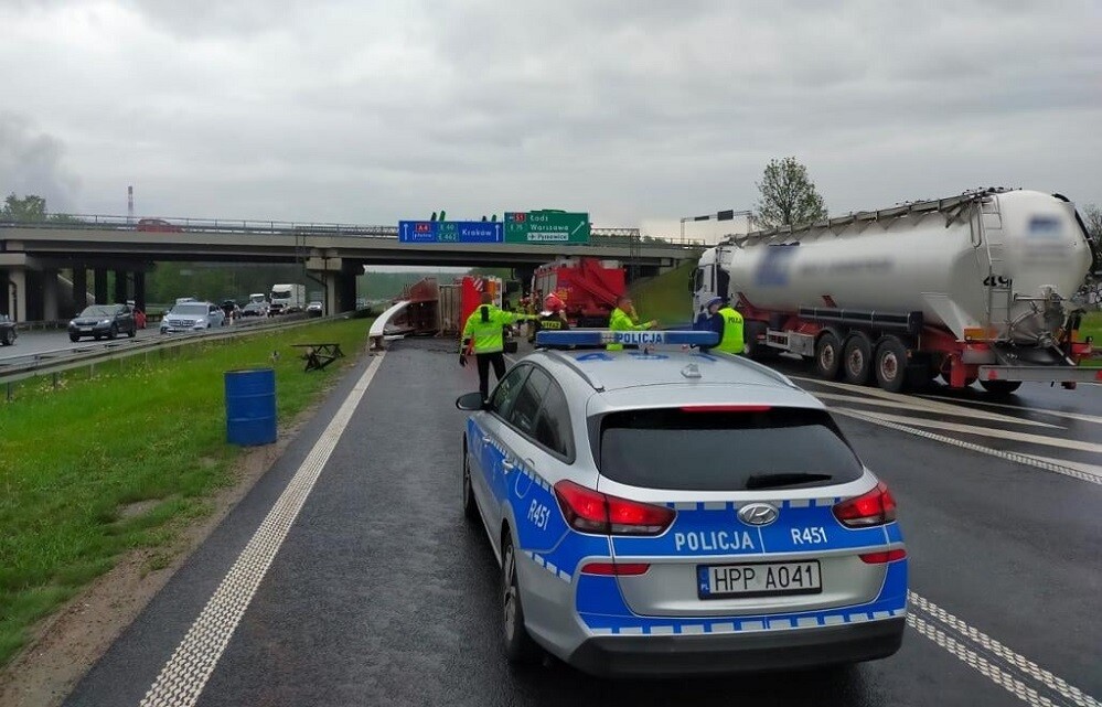 Do zdarzenia doszło w poniedziałek (17 maja) po godz. 7 rano na węźle S1/A4 w Mysłowicach. Dwa pasy ruchu autostrady w kierunku Krakowa zostały zablokowane. Spowolniony ruch pojazdów w stronę Krakowa odbywa się pasem awaryjnym.