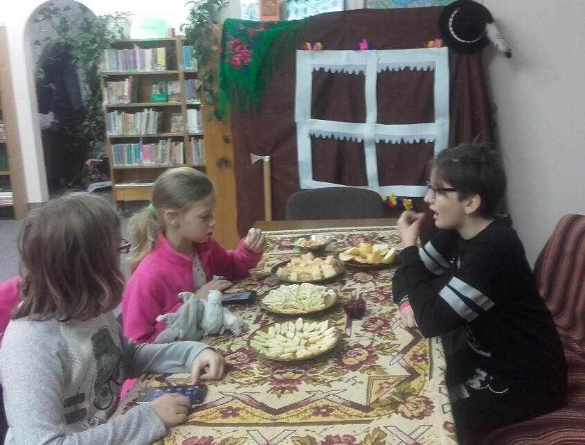 Drugi tydzień ferii w bibliotece kosztowskiej dzieci rozpoczęły 19 lutego od poznania kultury i folkloru podhalańskiego oraz obejrzenia prezentacji, przedstawiającej szczegółowy opis stroju góralskiego (kobiecego i męskiego). Podczas tego spotkania dzieci miały również okazję zobaczyć oryginalny strój kobiecy, udostępniony przez jedną z dziewczynek uczęszczających na zajęcia. W formie zabawy edukacyjnej dzieci rozwiązywały krzyżówki i łamigłówki związane z kulturą podhalańską. Kolejnego dnia zorganizowano tu mini konkurs plastyczny zatytułowany „Piękno gór”. Zanim jednak dzieci zaczęły malować, pokazano im prezentację poświęconą krajobrazowi wysokogórskiemu Tatr. Prace wykonano farbami oraz pastelami, a wszyscy uczestnicy konkursu otrzymali drobne nagrody. Na zakończenie ferii odbyła się zabawa pod hasłem „W góralskiej izbie”. Na tę okoliczność przygotowano tradycyjne potrawy, czyli oscypek - wędzony ser, przygotowywany z mleka owczego oraz korbacze – ser góralski, produkowany z mleka krowiego. W czasie degustacji dzieci wysłuchały góralskich anegdot i satyr oraz muzyki góralskiej.