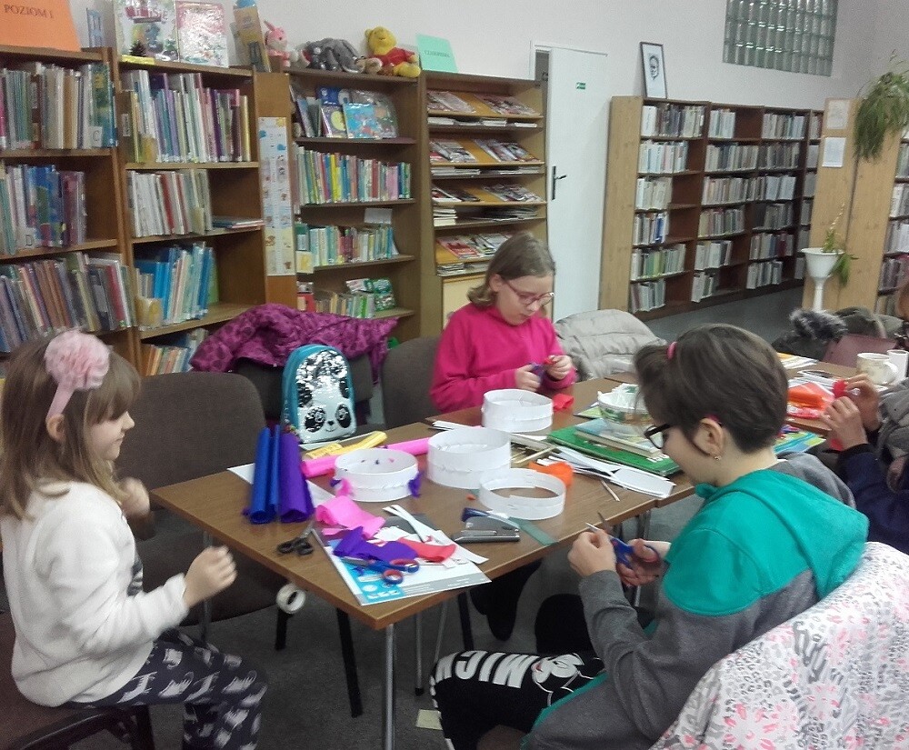 Na zajęciach zaprezentowano także ilustrowane albumy z pięknymi tatrzańskimi krajobrazami, które zainspirowały uczestników zajęć do wykonania techniką kolażu plakatu o tematyce górskiej. Na kolejnym spotkaniu 13 lutego poznawano historię Tatr w legendzie. Dzieci wysłuchały m. in. legendy o tym „Jak powstało Morskie Oko”, o „Krzyżu na Giewoncie”, „Śpiących rycerzach” oraz „Halnym wietrze”. Podczas zajęć plastycznych dziewczynki wykonywały z kolorowej bibuły kwiaty nawiązujące do tradycyjnych ozdób kultury podhalańskiej. Nie zabrakło też harców przed biblioteką na świeżym powietrzu przy lepieniu bałwana. W dniu 14 lutego zorganizowano natomiast zajęcia pod hasłem „Malowanie motywów góralskich na szkle”. Zanim uczestnicy spotkania przystąpili do malowania, przekazano im podstawową wiedzę o tej technice plastycznej, będącej bardzo charakterystycznym elementem sztuki Podhala.